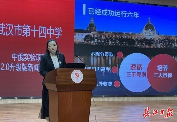 长江日报大武汉客户端1月16日讯(记者杨枫 通讯员陈川)组建俄语实验班,聘请专业俄语老师对孩子们进行免费俄语教学,高三年级既可以选择俄语替代英语作为高考外语考试科目,参加国内高考,也可以根据个人发展计划选择赴俄留学。1月16日,武汉市第十四中学召开“中俄实验项目”发布会,吸引大批初三家长通过网络进行关注。“免费学俄语,而且高考俄语考纲只需要掌握1500个左右的单词,对于英语较弱的孩子吸引力十足。”参加发布会的一名武昌初三家长说。