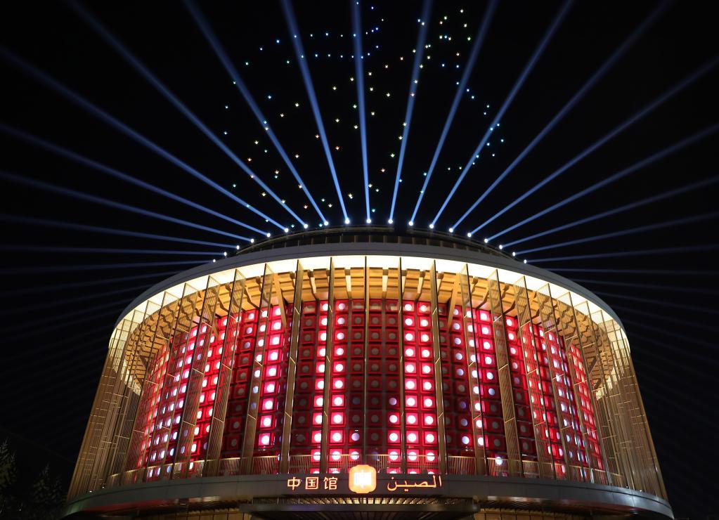 这是1月10日在阿拉伯联合酋长国迪拜世博会拍摄的中国国家馆日灯光秀。新华社记者 王东震 摄