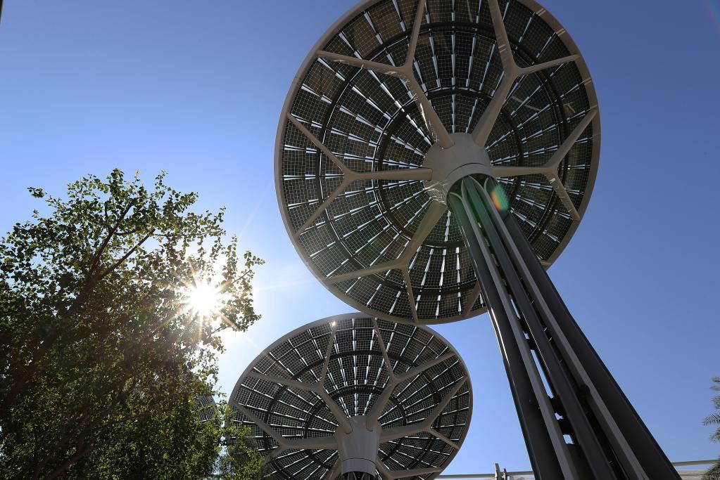 这是1月11日在阿拉伯联合酋长国迪拜世博会拍摄的被称作“能源树”的太阳能发电设施。新华社记者 王东震 摄