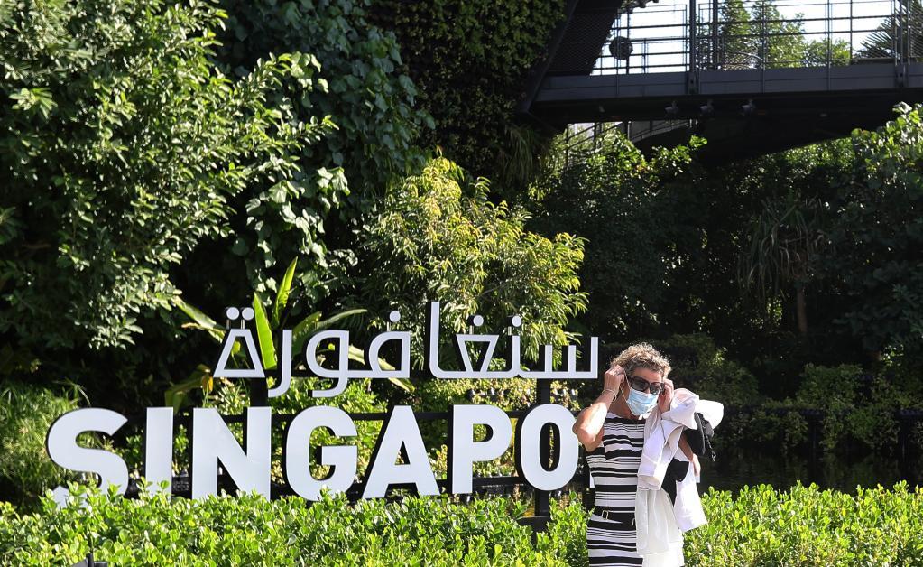 1月11日,游客在阿拉伯联合酋长国迪拜世博会的新加坡馆前拍照。新华社记者 王东震 摄