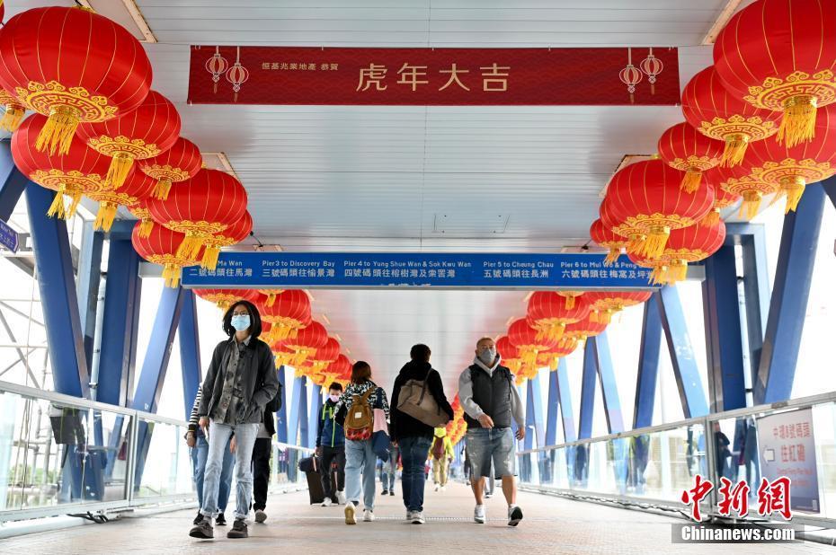 春节将近,香港新春气氛渐浓。1月18日,香港中环国际金融中心二期外的连接中环码头的天桥上挂满大红灯笼,迎接虎年新春。图为天桥上挂满大红灯笼。中新社记者 李志华 摄