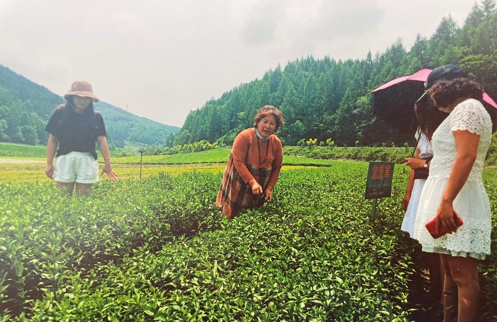 季忠英(左二)和村民一起查看药材种植情况。(受访者供图)