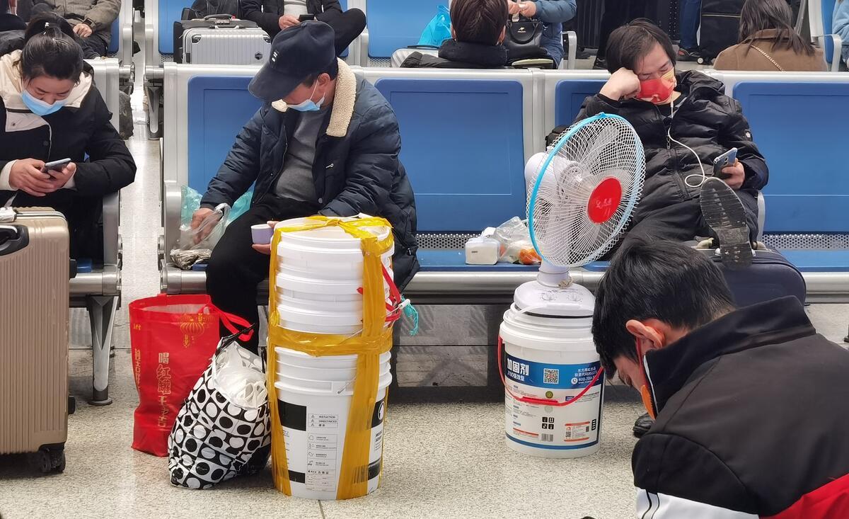 “这个桶子好结实的,带回去用,比买的桶结实多了。”来自湖南怀化的旅客欧到玉这样告诉记者,这个桶他平时就用来洗衣服、洗澡,回家的火车上带着它,能装零碎的物品,渴了饿了随时开盖就可以拿,也不会散乱,还能偶尔坐着休息。在车站,这样的塑料桶还有许许多多,实用、方便,是乘客对这只简简单单的桶最大的认可。
