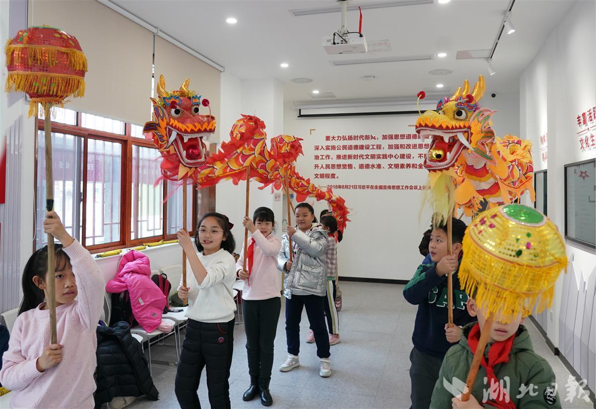 通过舞龙舞狮训练,强健体魄,传承文化,营造新春欢乐气氛,充实第一个“双减”寒假,这是武昌区新时代文明实践中心“青少年红色大讲堂”寒假研学营其中的一套课。此外,武昌区青少年还能免费参与“课本中的英雄人物”“非遗剪纸”“快板宣讲十九届六中全会”等多项公益课程,引导青少年找到自我学习成长的梦想和方向,杜绝“空心病”,自觉成为社会主义核心价值观的践行者和小小宣传员。