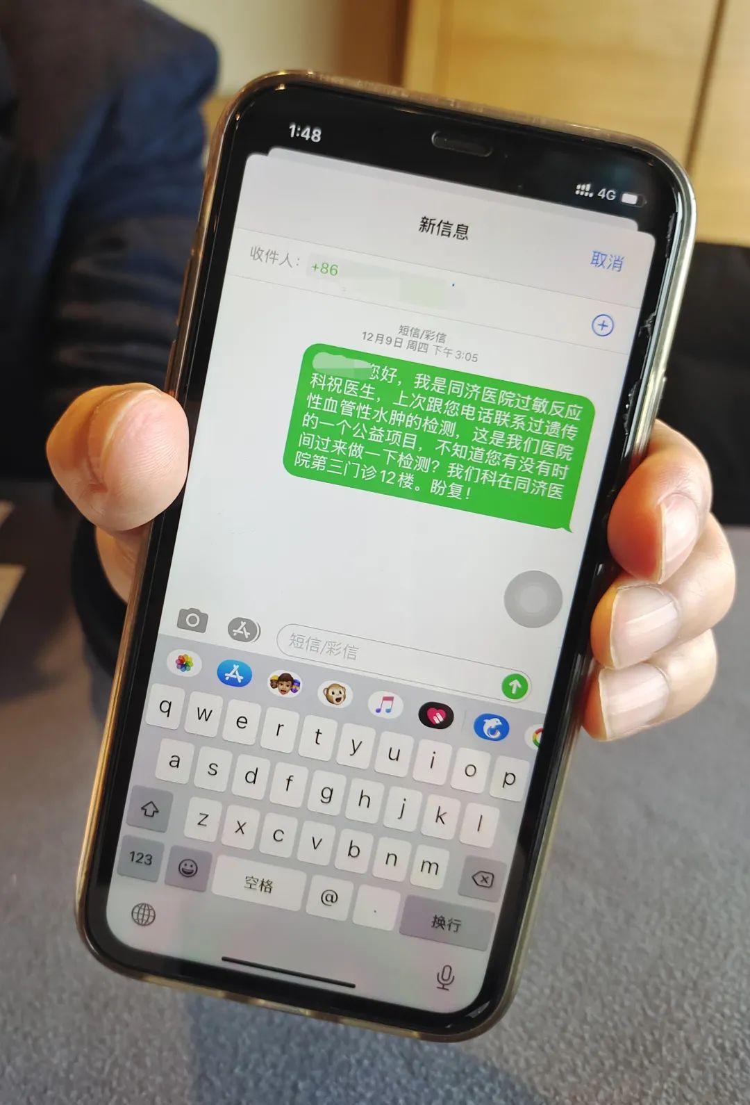 “您好,我是同济医院过敏反应科祝医生,上次跟您电话联系过遗传性血管性水肿的检测,这是我们医院的一个公益项目,不知道您有没有时间过来做一下检测?”