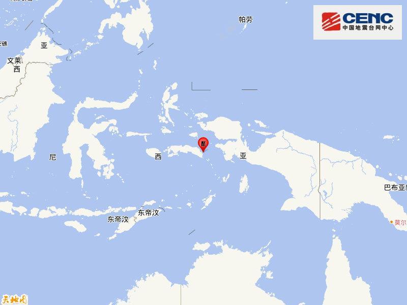 印尼塞兰岛附近海域发生5.3级地震 震源深度20千米