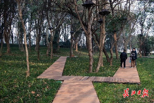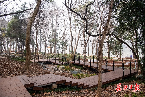 18日,长江日报记者在景区现场采访多位市民,大家纷纷表示,景区改造提升后环境比以前更好了。特别是临湖的这片区域,原来从景区内的亭子里望过去,景观都被杂乱树木遮挡住,现在望过去,能看到高大的树木、地面的花草、架空的木栈道层层递进营造出层次感,远远就能看到湖景,氛围感更强。