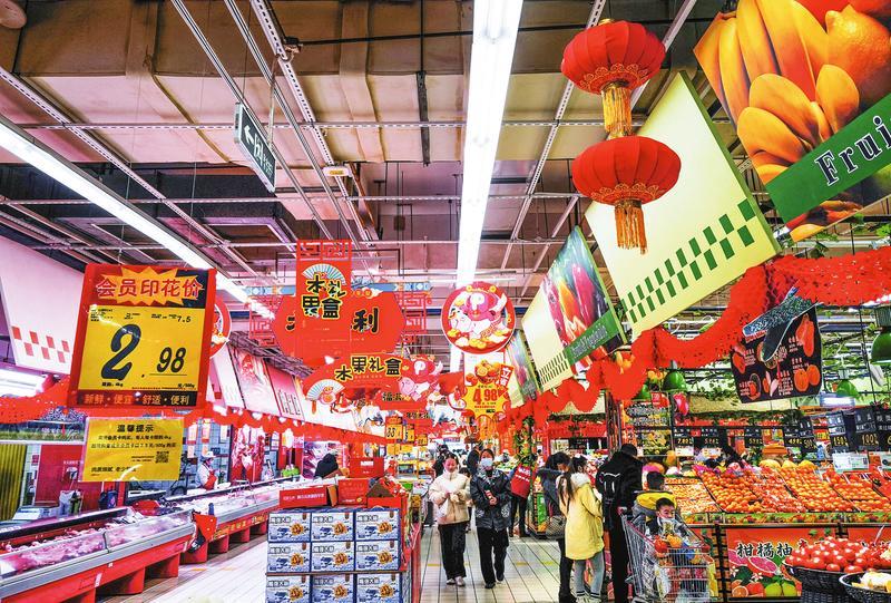 春节临近,我市各商超、卖场布置得喜气洋洋,大润发商场开启“年货大街”模式,货品区内挂满红灯笼、中国结,营造出浓厚的节日氛围。前来购物的市民络绎不绝,各类商品琳琅满目,水产、肉类及蔬菜、水果等商品供销两旺。 (随州日报全媒记者李文军摄)