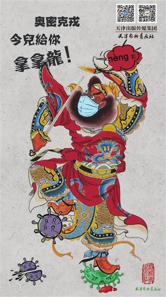 “奥密克戎,今儿给你拿拿龙!”由天津杨柳青画社在社交媒体上发布的戴着口罩、脚踩病毒的抗疫钟馗年画,将传统年画与抗疫时事巧妙结合,甫一亮相就刷了屏。