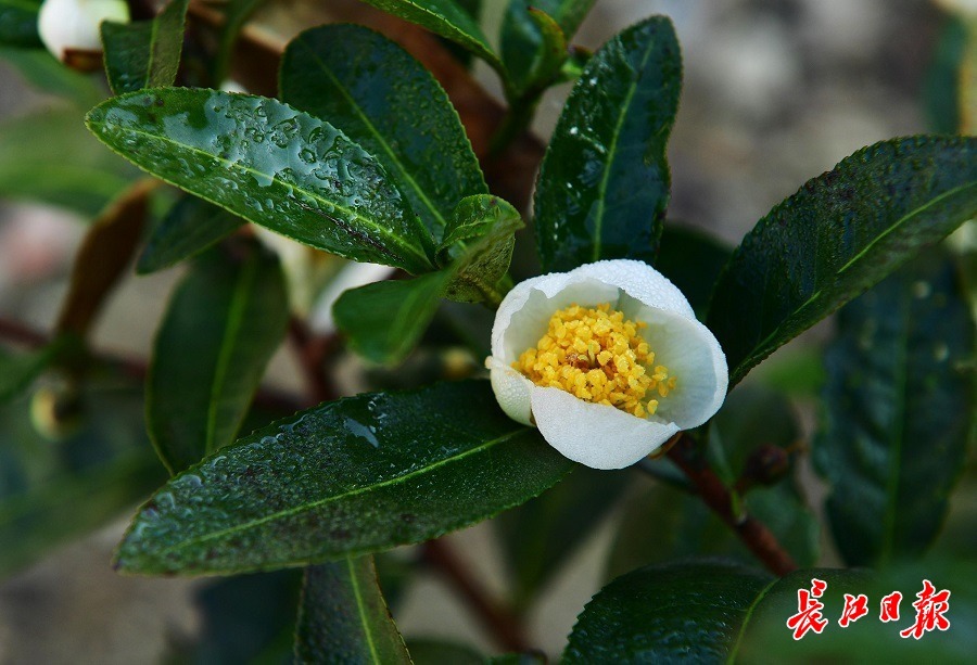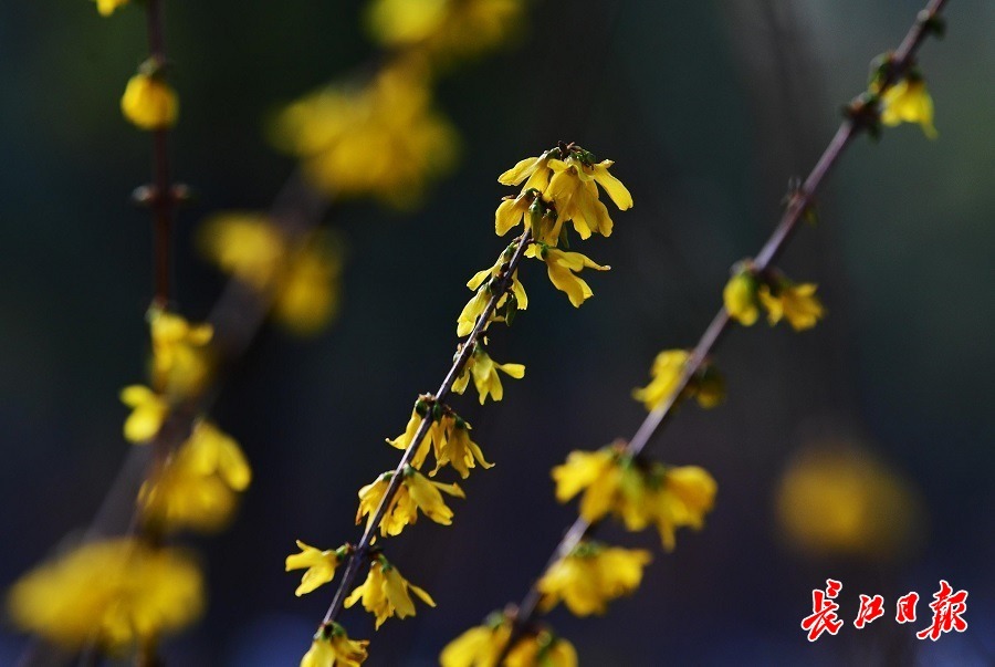 令人惊喜的是,街头的迎春花、金钟连翘花也少量绽放,预告着春天的脚步。而部分桂花二度绽放,似乎乱了节奏。(长江日报记者李永刚 摄影报道)