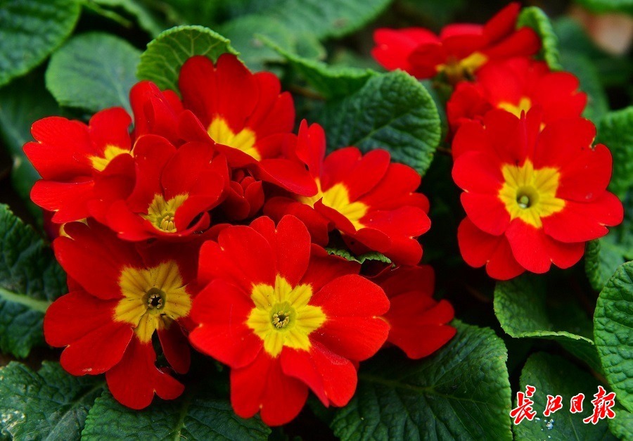 东风大道路边花境的欧报春。