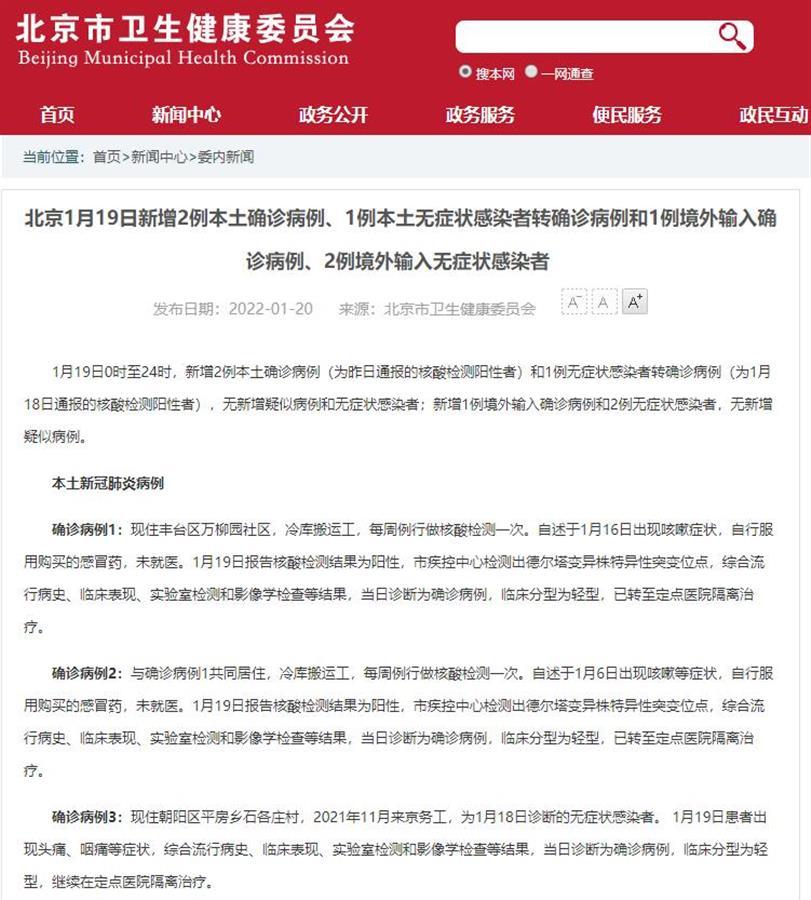 岳先生是18日北京市朝阳区发现的阳性感染者,1月20日宣布确诊。岳先生从事装修材料搬运工作,流调信息显示他经常每天从凌晨打工到天快亮,足迹遍布北京朝阳区、东城区、顺义区等地,有时一天要到四五处地方工作。
