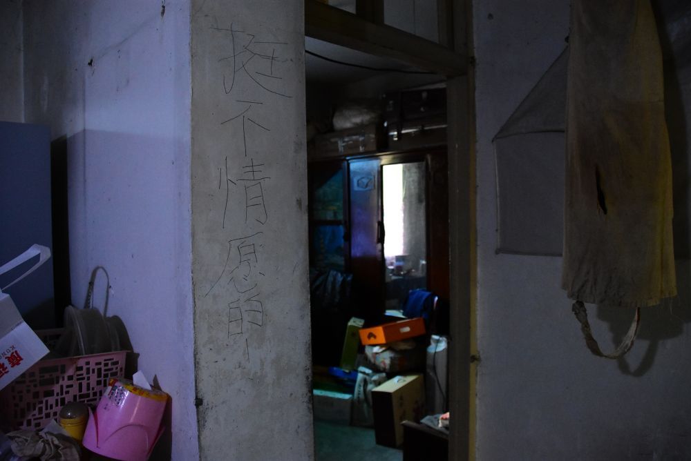 金晓宇家中墙壁上有他儿时写的“挺不情愿的”字迹。新华每日电讯记者郑梦雨摄