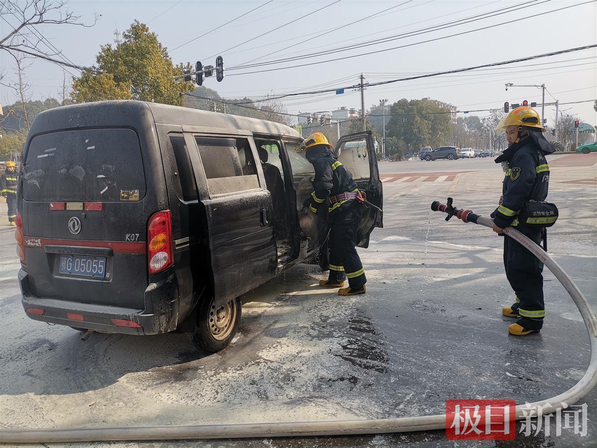 “就在我们加油站旁边的路口。”1月20日,提起当日发生的一幕,中石化黄石石油公司新磁湖加油站站长袁姣莲仍心有余悸。她介绍,当日上午12时30分左右,她与站内当班员工饶丽霞、马先桂在值班。饶丽霞发现停在路口等红绿灯的一辆面包车突然浓烟滚滚,便立即打了报警电话,并顺手从加油站拿着一个4公斤的灭火器冲上去帮忙灭火。