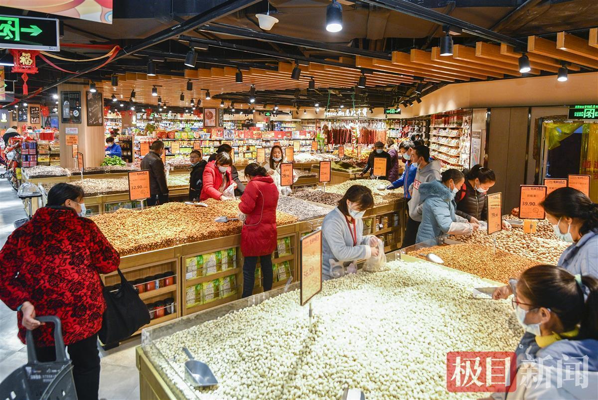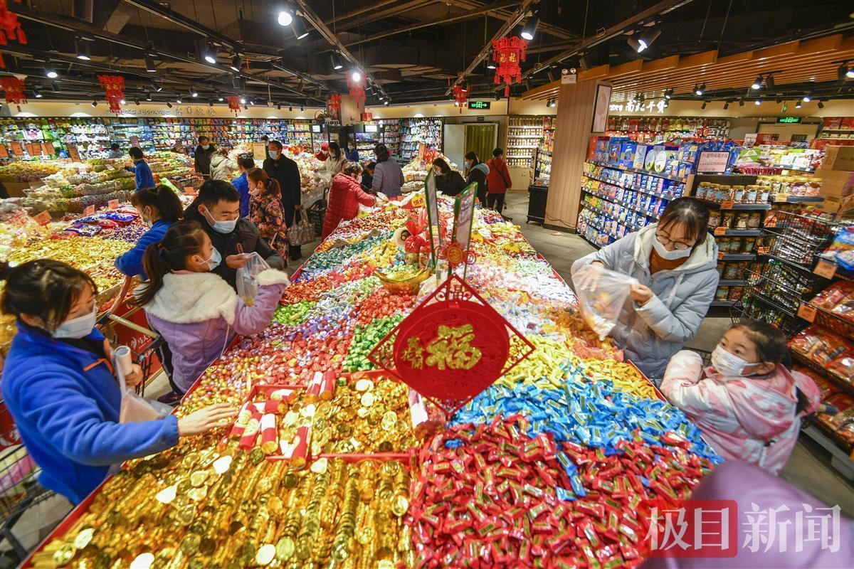1月20日,春节临近,三镇市民忙着准备年货,武汉各大商超热闹非凡、年味越来越浓。
