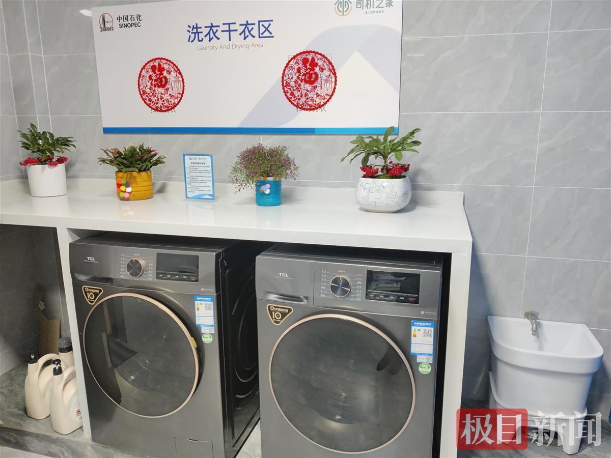 在位于京港澳孝感服务区中国石化加油站,极目新闻记者发现,“司机之家”设在加油站的二楼,进入之前需实名登记和出示行程码、健康码。“司机之家”设有洗浴室、休息室、餐饮室等,洗浴室里配有2个洗浴间和2台带有烘干功能的洗衣机,休息室内配有桌椅、充电器、电视机、饮水机、空调及2台按摩椅,司机可以在这里喝口热水、吃顿热饭、洗次热水澡、睡个安稳觉。