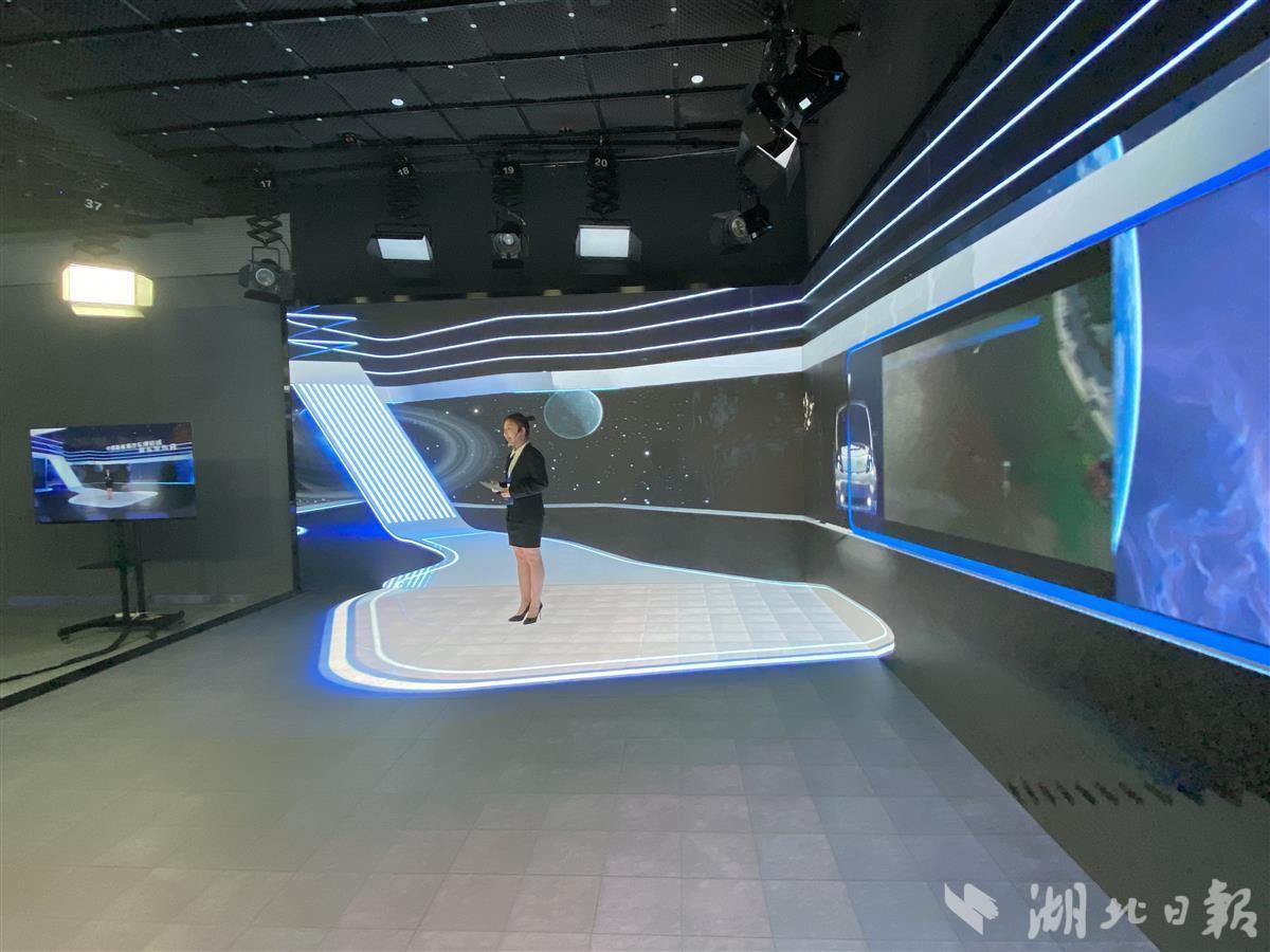 “XR就是一种将虚拟场景和真实元素进行交互呈现的虚拟演播前沿技术。”据现场技术人员介绍,此次亮相汉阳融媒的XR演播区由LED显示、三维渲染、实时拍摄和目前行业内精度最高的空间跟踪定位等配套系统构成,借助先进的XR技术,演播人员就能在画面中遨游太空、赏月黄鹤楼,观众从视觉上就能感受到虚拟世界与现实世界无缝转换的“沉浸式”体验。