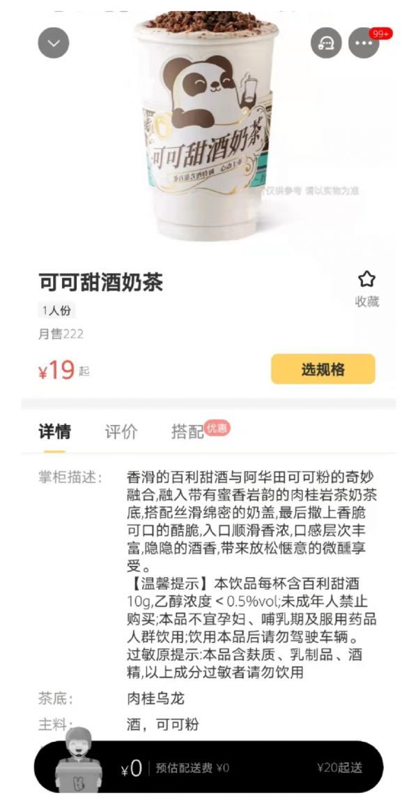 但记者在两大外卖平台上搜索,大量主打“酒+奶茶”的产品都未能做出详尽的原材料介绍和风险提示,这意味着未成年人在没有任何风险提示的情况下也可能因此下单。除此以外,其余饮用风险人群如孕妇、哺乳期人群及服用药品人群的安全健康也难以得到有效保障。