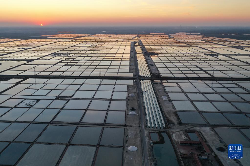 这是山东寿光羊口镇盐田(2021年12月1日摄,无人机照片)。新华社记者 朱峥 摄