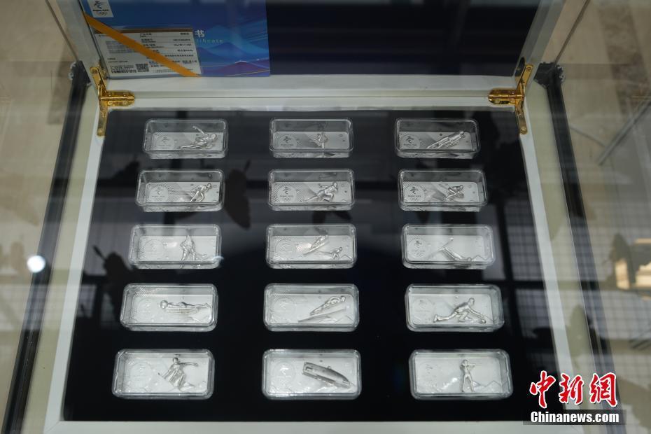 1月22日,北京2022年冬奥会特许商品冰雪竞技金条、冰雪竞技银条套装发布会在北京举行。图为现场展示的冰雪竞技银条套装。 中新社记者 崔楠 摄