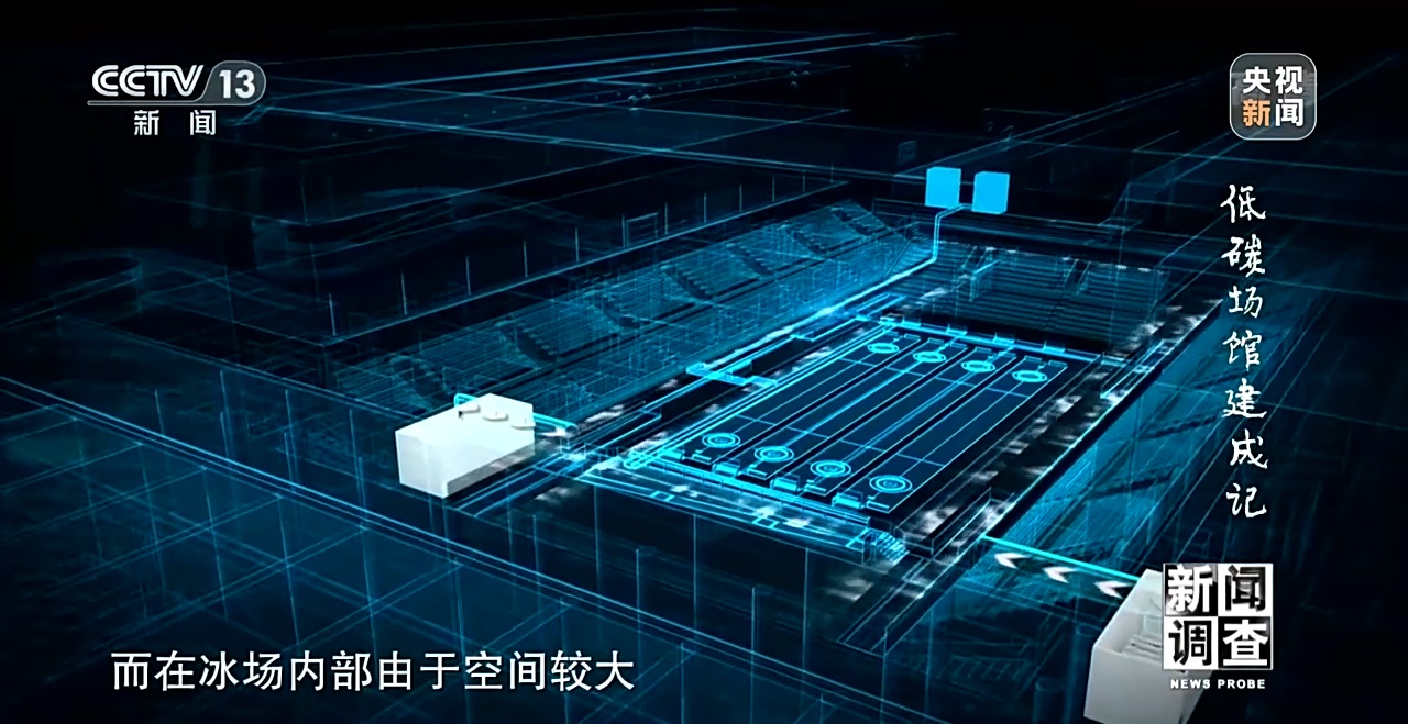 国家速滑馆制冰系统设计总负责人 马进:现在好多家庭采暖用的是叫“地热采暖”,这个就反过来了,叫“地冷制冰”,就是说在这个地板下它里面放了很多制冷管道,通过制冷剂在里边流动,它把地板的温度降下来。