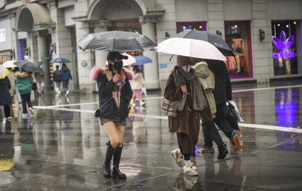 1月23日,持续的低温雨天也挡不住人们的购物热情,江汉路上仍然人来人往。 记者许魏巍 摄