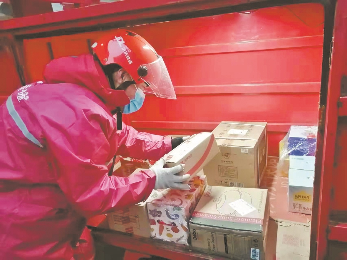 “春节我留下值班,家人都在身边,就地过年。快递不停运,也能给大家带来便利。”京东物流武汉财大营业部快递员袁朝晖如是说。