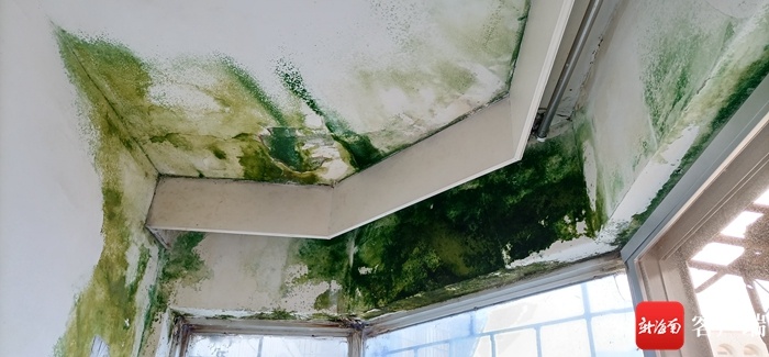 据富成大厦26楼一业主张大姐反映,自己位于该大厦的房子很少有人居住,去年6月份,家人回来看看房子,结果推开门迎面而来一股酸臭味,仔细一看,原来房屋天花板和阳台顶墙多个位置出现渗水,而且有的渗水区域已经长出了不少青苔。