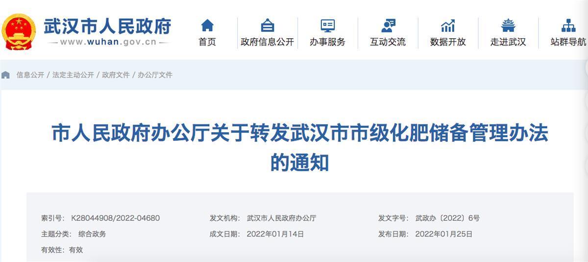 该《办法》明确,根据武汉市农业生产特点和农作物用肥需要,市级化肥储备期限为半年,即当年1月1日起至6月30日止。