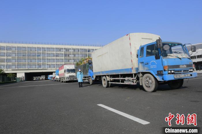 中新网珠海1月26日电 (邓媛雯 王相国)年关渐近,经港珠澳大桥珠海公路口岸出入境货车数量持续增长。26日9时30分,港珠澳大桥珠海公路口岸迎来了出境货车高峰,一辆辆载满“年货”的跨境货车,源源不断从这里快速通关,运往香港和澳门各大市场。