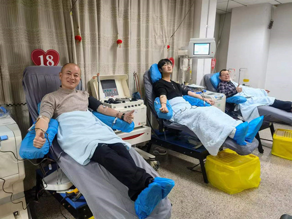 现场,秦义也陪同儿子献出2个治疗剂量的血小板。从2007年至今,秦义已献血178次,累计献血量达57300毫升。作为“秦义无偿成分献血感召队”队长,他已感召近600人参与无偿成分献血。