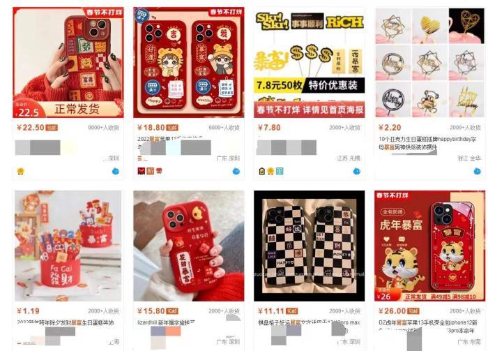 中新财经在网购平台搜索“暴富”发现,可以搜索出各种喜气洋洋的小物件,从奶茶蛋糕到挂件手机壳,衣食住行方方面面没有它造不出的;社交平台搜索“暴富”,有运势博主帮你分析星座“暴富可能性”,有创业博主为你推荐“暴富捷径”,甚至连生活博主也能助你“养成暴富好习惯”。