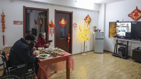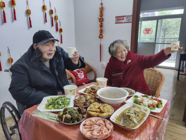 长江日报大武汉客户端1月27日讯 “道道是我女儿的拿手好菜,这年饭吃得我们俩心里高兴啊!”1月26日是南方传统小年,在江岸区社会福利院里分别住在护理区、自理区的肖宝明、朱莉芳老两口团聚了,身在武汉的女儿送来六道硬菜,老两口亲手包了近百个饺子,工作人员帮忙转交给对方。老夫妇的“云”年饭上,视频那头还有老人身在北京、武汉的多位亲属。