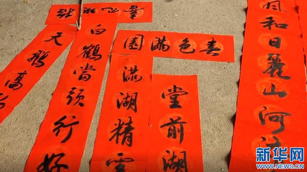 现场展示写好的春联。新华网 发 陈荻薇 摄