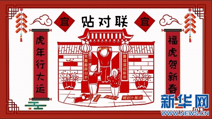 贴春联是中国人过年的习俗,当人们在自己的家门口贴春联、福字、窗花的时候,也意味着春节离我们越来越近了。