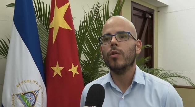 △尼加拉瓜通讯与民政委员会的媒体协调人丹尼尔·埃德蒙多·奥尔特加·穆里略接受总台记者采访并发来贺信