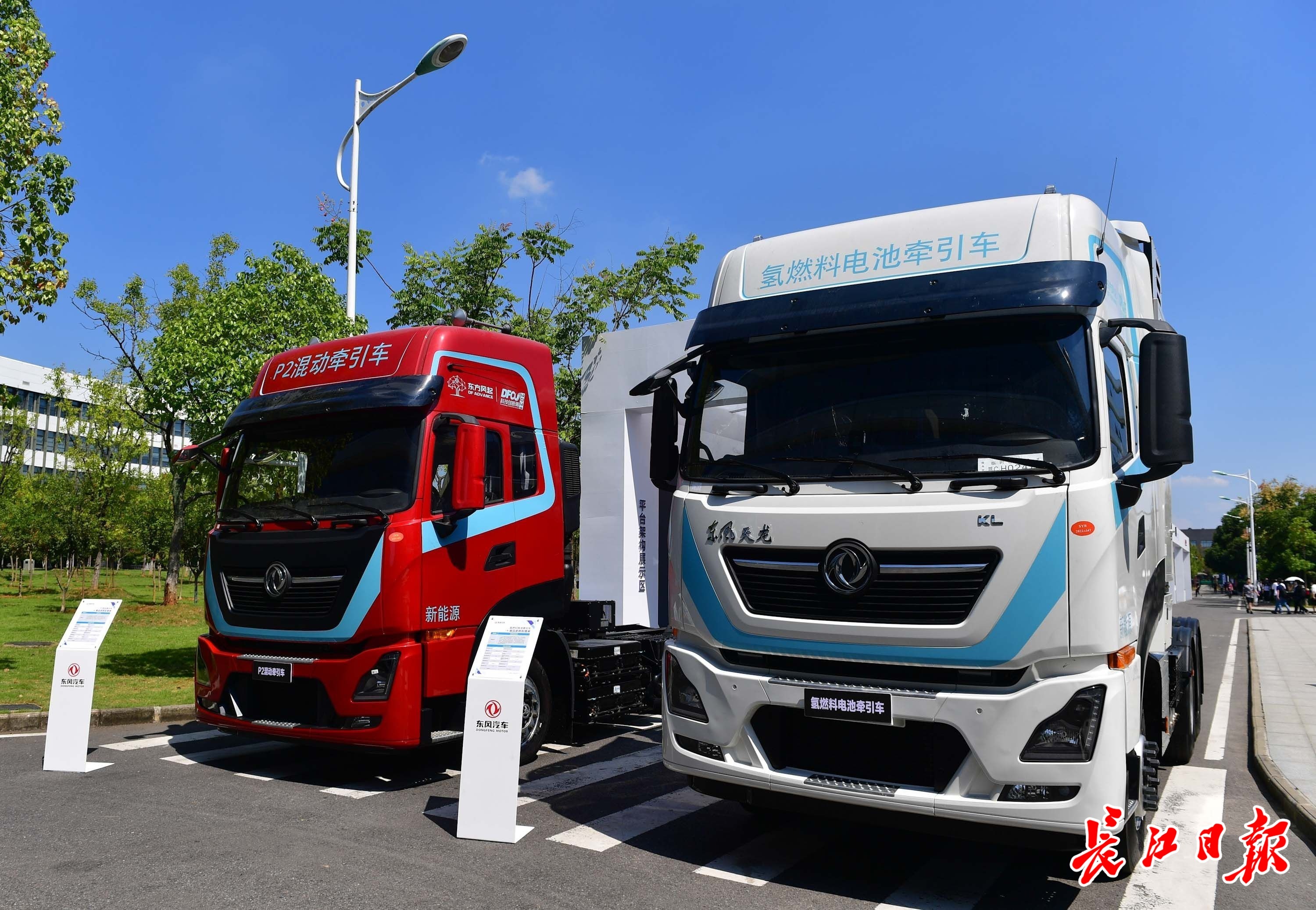 东风公司生产的氢燃料电池牵引车(右)。长江日报记者李永刚 摄