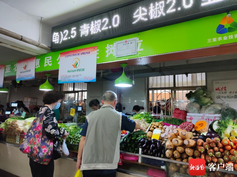 上午10时,三亚市第三农贸市场内,前来选购农产品的市民络绎不绝。青瓜2元、土豆2元、上海青2元……在第三农贸市场的平价菜摊上都有明码标价的价格标签,大部分蔬菜售价都维持在2元左右,不仅有萝卜、茄子、苦瓜等丰富多样的蔬菜品种,瓜果、肉类、水产、南北货、粮油米面等日常所需品也一应俱全。