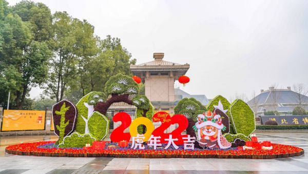 湖北省博物馆主入口前的“虎年大吉”立体花坛,也为此次新建,已经成为过往孩子们的新晋打卡点。武昌区园林部门相关负责人介绍,该立体花坛主体扎景以造型树为背景,造型松掩映其中,小老虎和礼品盒等元素增添节日氛围。27日,李女士和女儿从省博出来,都感到十分惊喜,女儿开心地和头戴虎头帽的“虎宝宝”合了影。李女士说;“我女儿今年12岁,也是个虎宝宝,看到街头的小老虎,不仅有过年的氛围了,还感到十分亲切。”