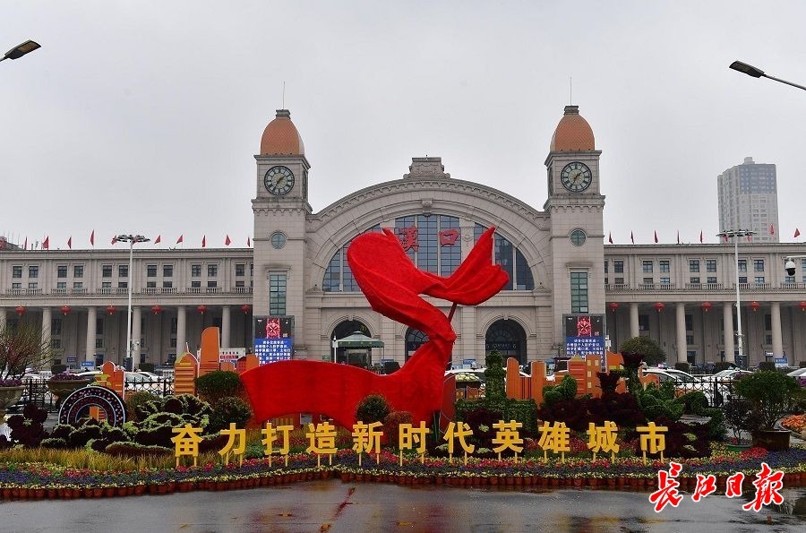 汉口火车站广场的立体花坛。长江日报记者李永刚 摄
