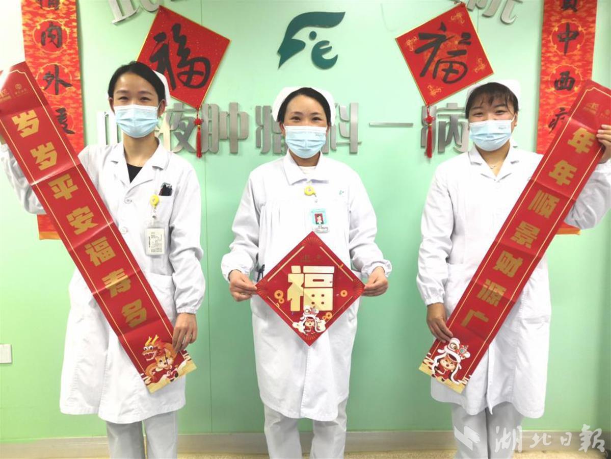 湖北日报讯(记者包东喜、通讯员范丽)1月26日农历腊月二十四,南方小年。这一天开始,祭灶、扫尘、穿新衣、剪窗花、贴春联,家家户户忙新年。小年,小年,期盼回家小团圆,然而有这样一群人,他们在新年到来之际,要在医院与疾病抗争,与死神搏斗,他们更希望能感受到浓浓年味,能得到新春祝福。