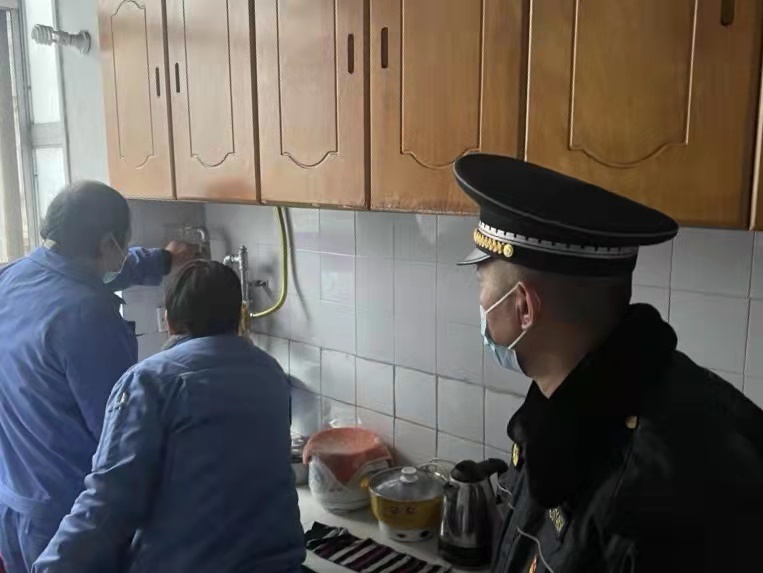工作人员入户进行燃气安全检测。 通讯员何岸 摄