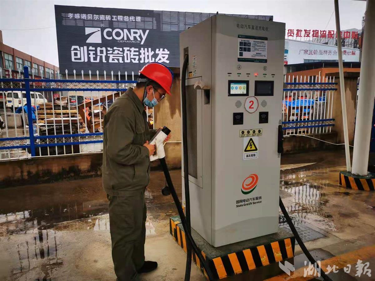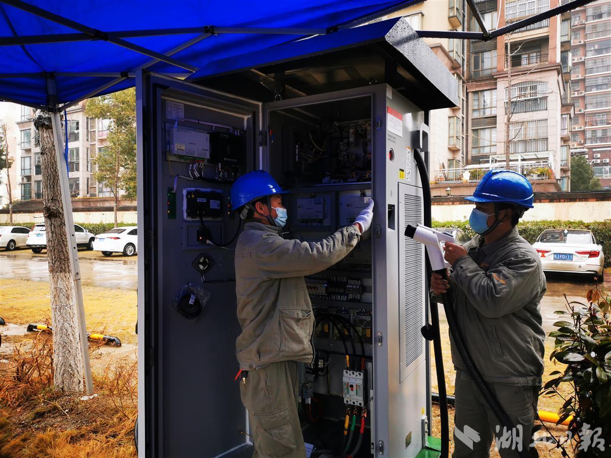 临近春节,孝感市的街头热闹多了,还不时堵车。1月26日上午,国网孝感电动汽车服务有限公司建设运维部专责唐有获,和同事们冒雨来到体育中心东侧停车场。