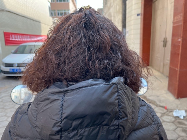 我妈烫头。