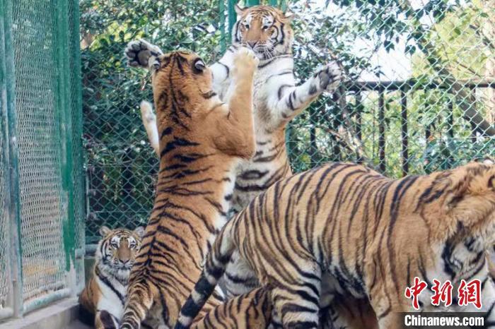 中新网上海1月28日电(陈静 倪丽)农历虎年新春即将到来,记者28日走访上海野生动物园,这里4月龄大的东北虎龙凤胎和白虎宝宝的展厅游客络绎不绝。 上海野生动物园方面透露,春节临近,园方特意给它们准备了牛仔骨和兔腿拼盘,这是三只小虎仔“虎生”第一次开吃带骨的食物,也叫“开食”,希望在2022年三只虎宝宝健康成长,成长为真正的老虎。