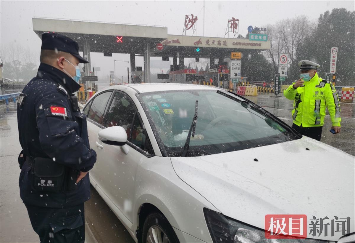在荆州监利市各高速公路收费站口入口检疫卡点,监利公安干警坚守防疫一线,积极应对气温骤降、突降大雪,对所有过往车辆实行24小时全覆盖疫情防控检查,做到不漏一车一人,切实筑牢外防疫情输入的第一道防线。