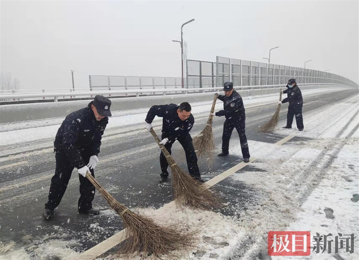 为确保雪天道路交通安全畅通,荆州市公安局交通管理局五大队强化辖区巡逻防控,排查安全隐患,动态关注辖区重点路段、桥梁的积雪结冰情况,并增加路面执勤警力、加大路面巡查频次,全力保障群众平安出行。