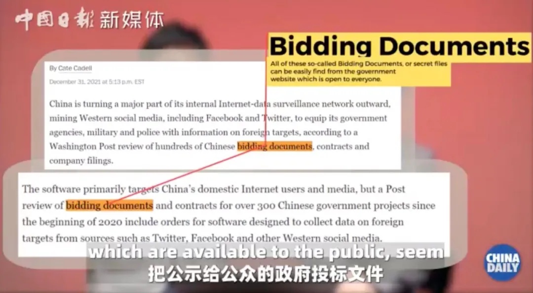 外媒还擅长把中国各级政府公示的投标文件包装成“爆炸性文件”。但是如大家所见,这些任何人都可以下载的文件为《华盛顿邮报》提供了“洞察”,给《纽约时报》提供了“罕见一瞥”,帮英国广播公司“厘清了思路”。外媒的“话术”真是很6666。