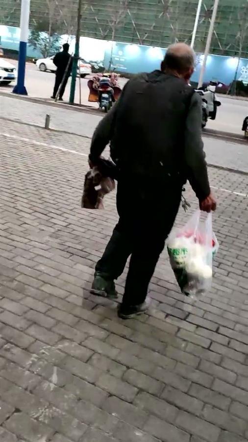 除了给朱大爷提供一些免费的吃食外,马女士有时也会给他买鞋子、送棉衣,每年回老家前还会给他准备一些过年的食物。27日晚,马女士回老家前一天,朱大爷特地过来送行,马女士专门给他装了炖好的肉,买了馒头和牛奶,大概够他吃半个月。