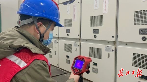 “天气寒冷,柜箱有时会出现凝露故障影响用电,一旦湿度过高,我们就需要打开除湿器进行干燥处理。”说完,李楚雄又拿出红外线检测仪,对柜箱进行温度测试,避免设备过热造成用电问题。
